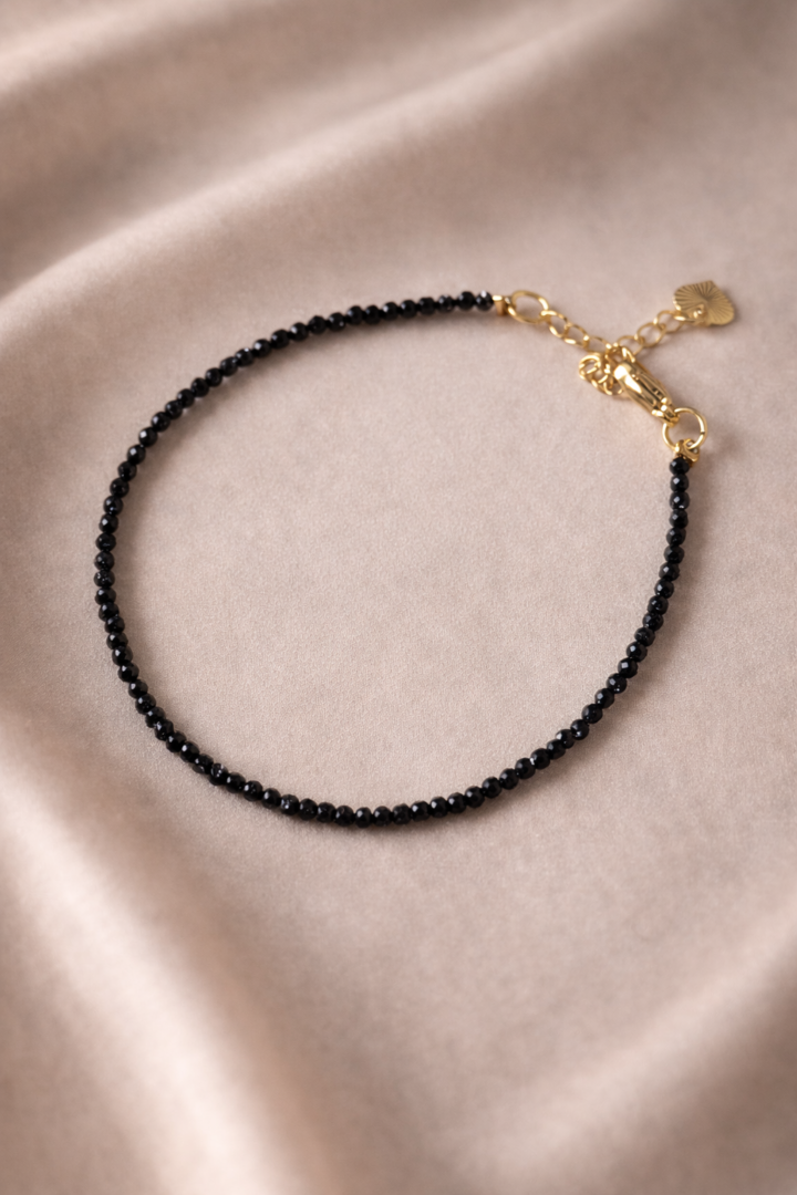 Elegancka i subtelna bransoletka wykonana z naturalnego czarnego turmalinu to połączenie minimalistycznego designu z wyjątkową energią kamienia. Drobne, fasetowane koraliki pięknie odbijają światło, tworząc delikatny, lecz wyrazisty efekt na nadgarstku.